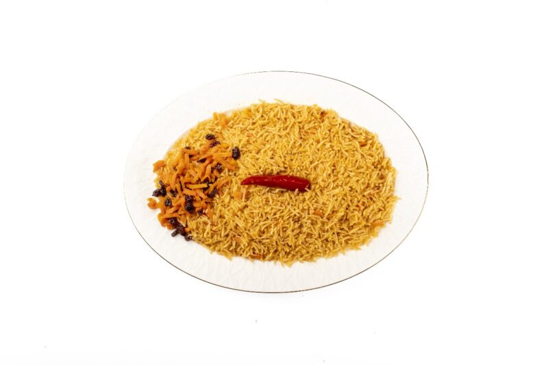 أرز مفلفل وطري، مطهو بعناية ليكمل وجبتك بأفضل شكل ممكن. كل حبة تمنحك طعماً متوازناً وقوامًا ممتعًا، لتجربة غذائية متكاملة تمنح شعورًا بالشبع والرضا.