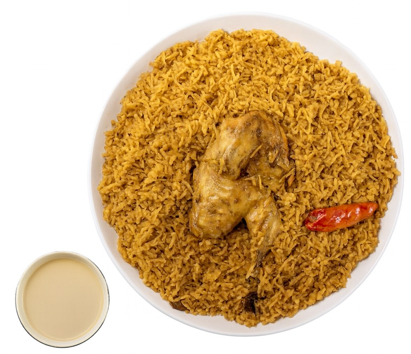 دجاج مضغوط مطبوخ بتتبيلة عربية أصيلة، يُطهى على البخار مع البهارات والليمون الأسود ليحافظ على طراوته ويمنحكم طعم غني مليء بالنكهات الشرقية مع الأرز البسمتي طويل الحبة، والبهارات العربية الغنية، ليمنحكم تجربة طعام فريدة بطعم لا يُنسى.